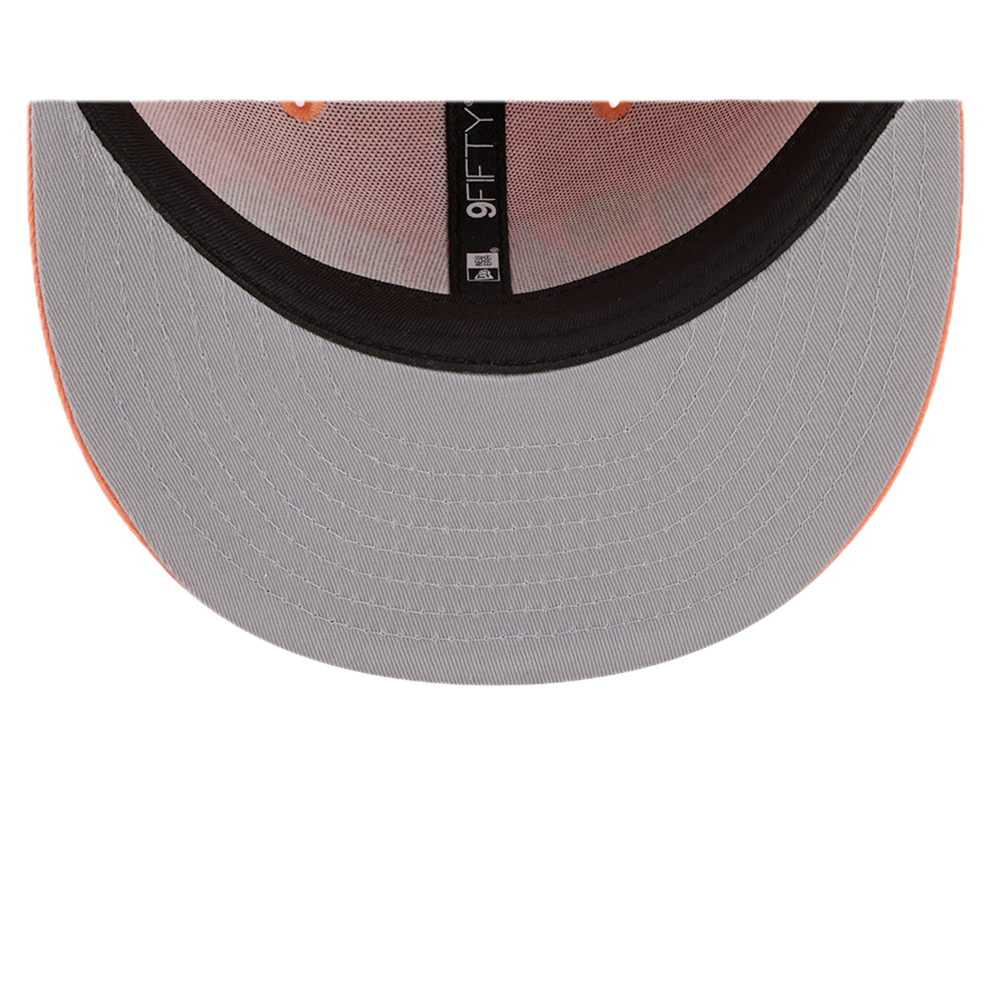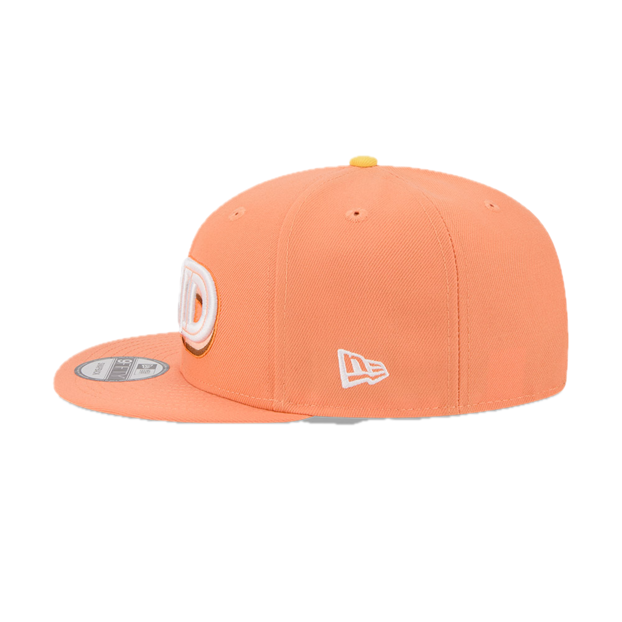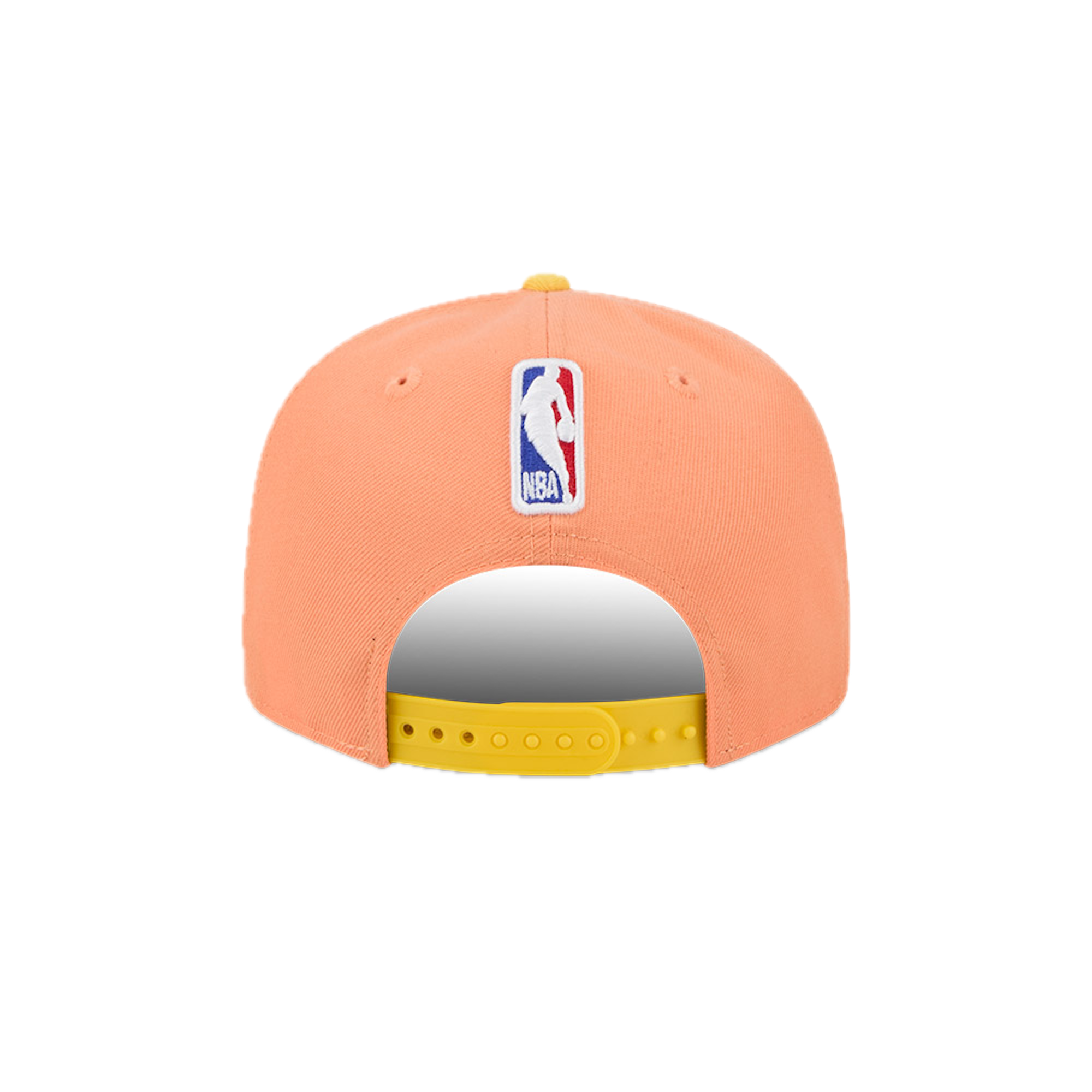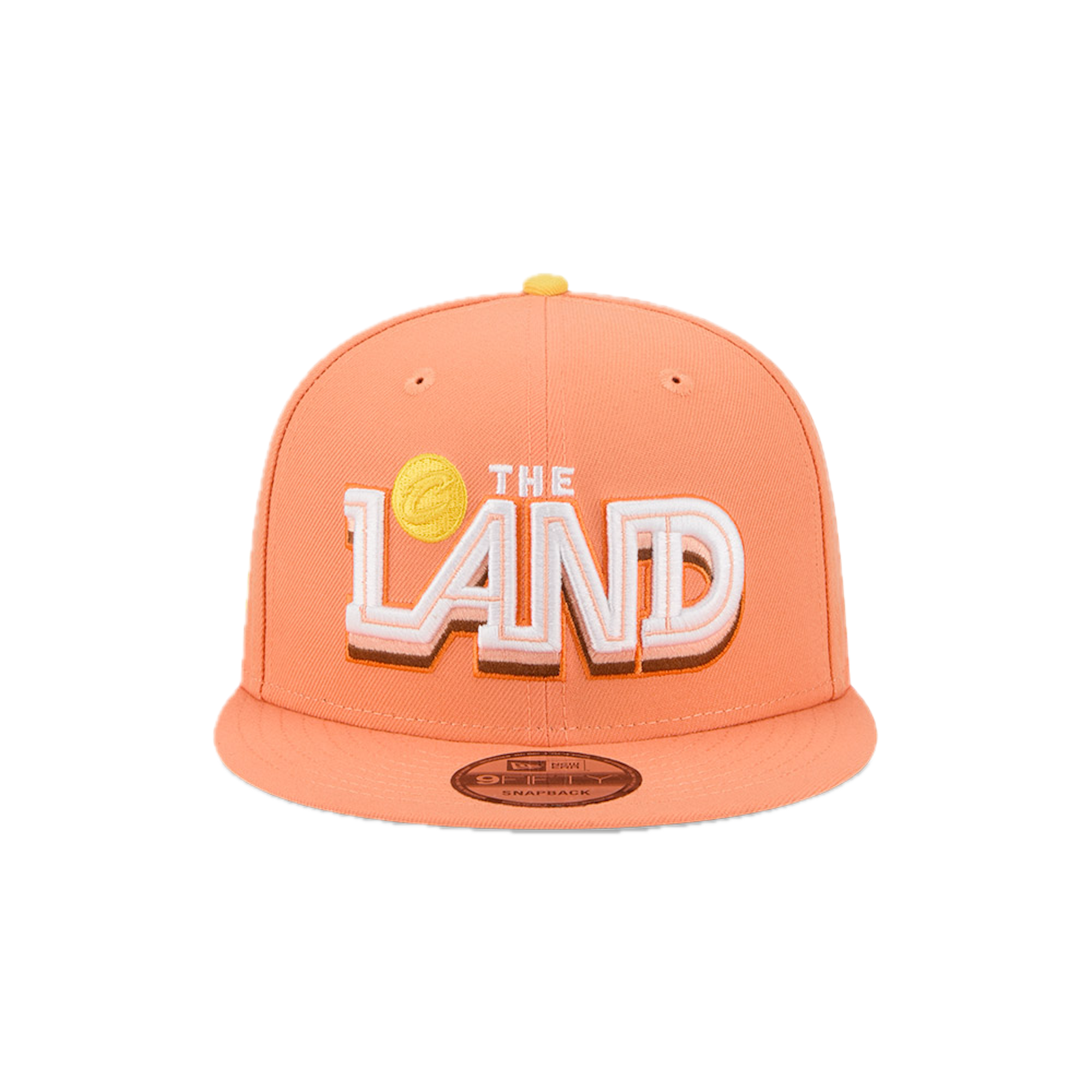 This New Era 9FIFTY Cleveland Cavaliers flat cap from the 2025 NBA City Edition features the Cavaliers' city name embroidered on the front panels, the team logo on the right side, the NBA logo on the back, and the New Era flag embroidered on the left side.