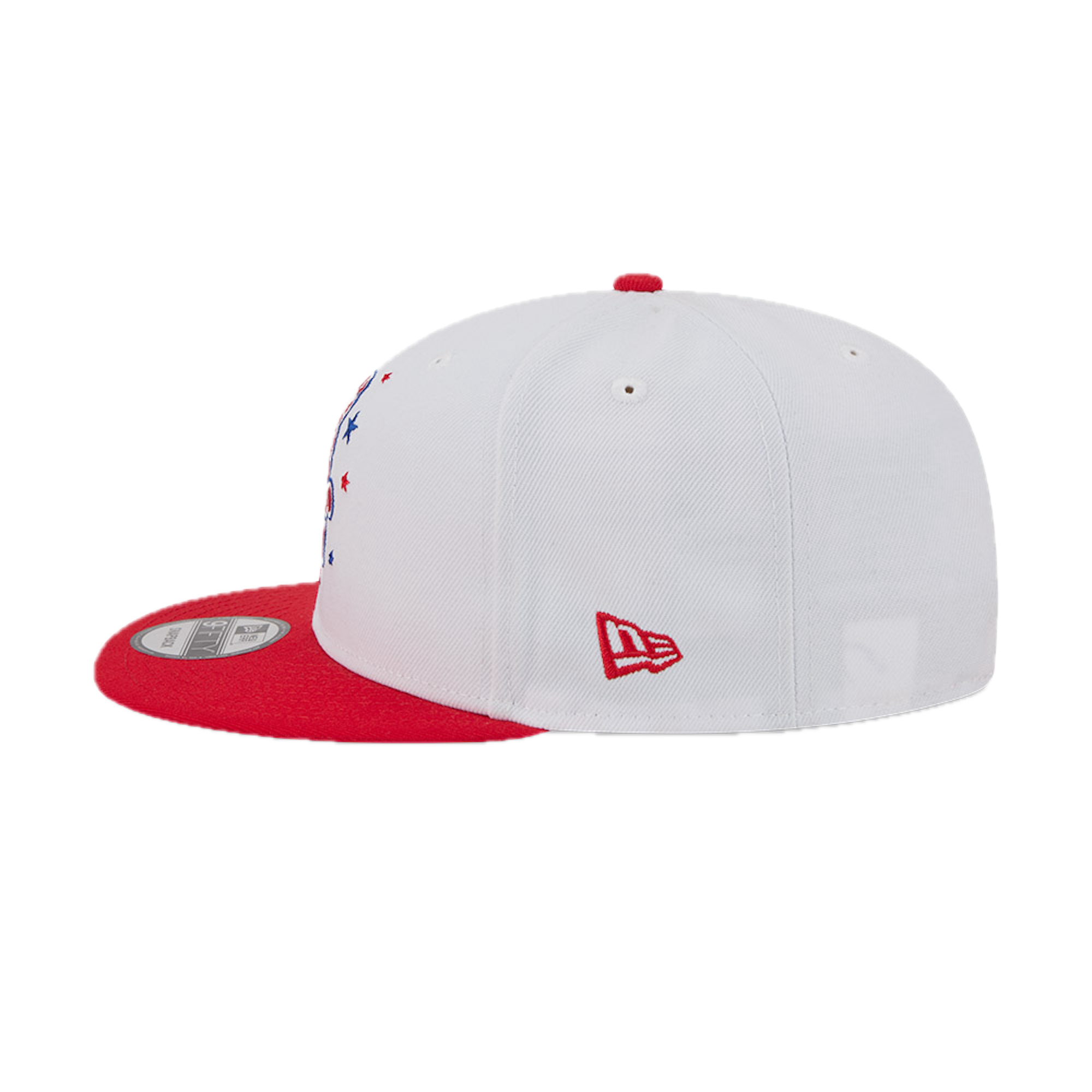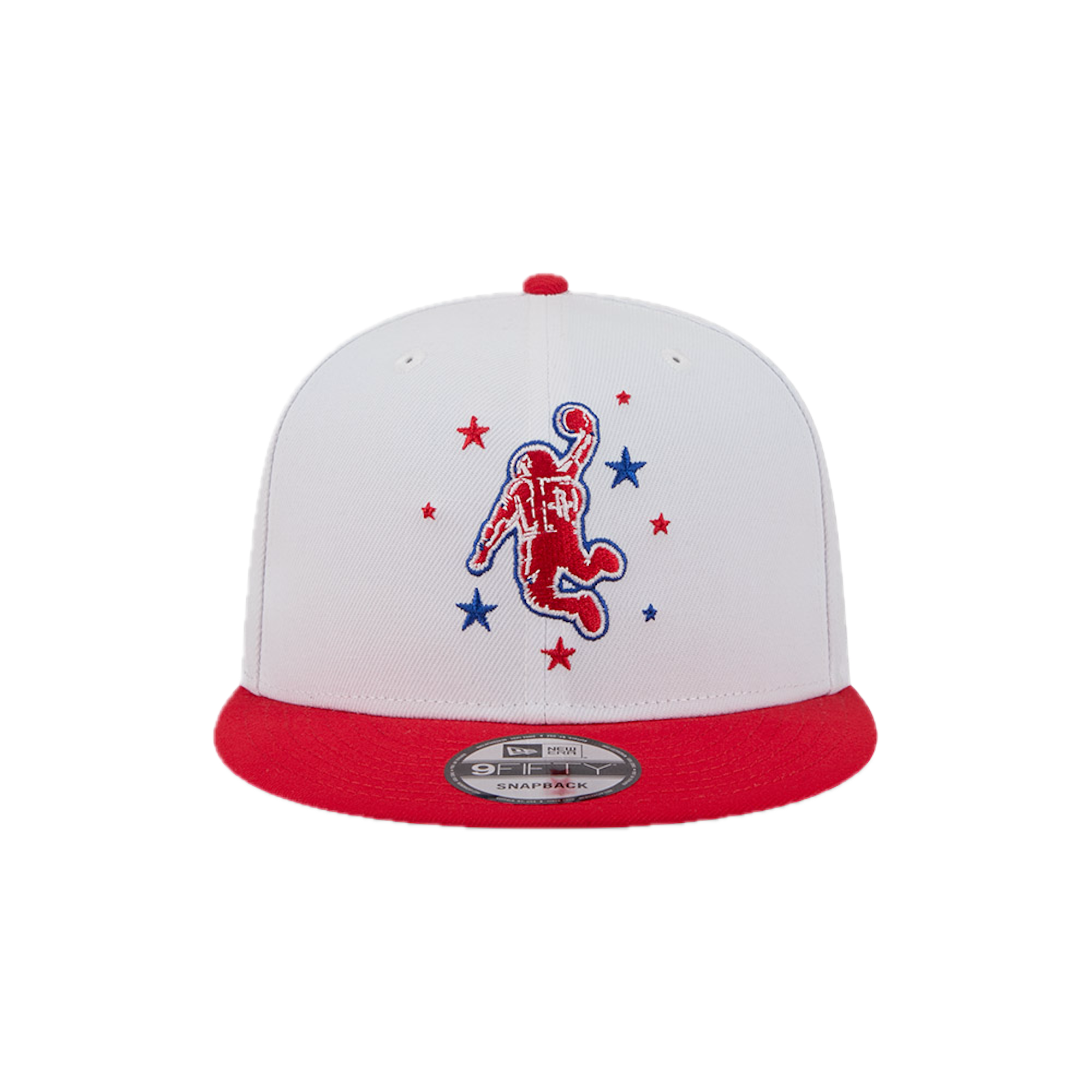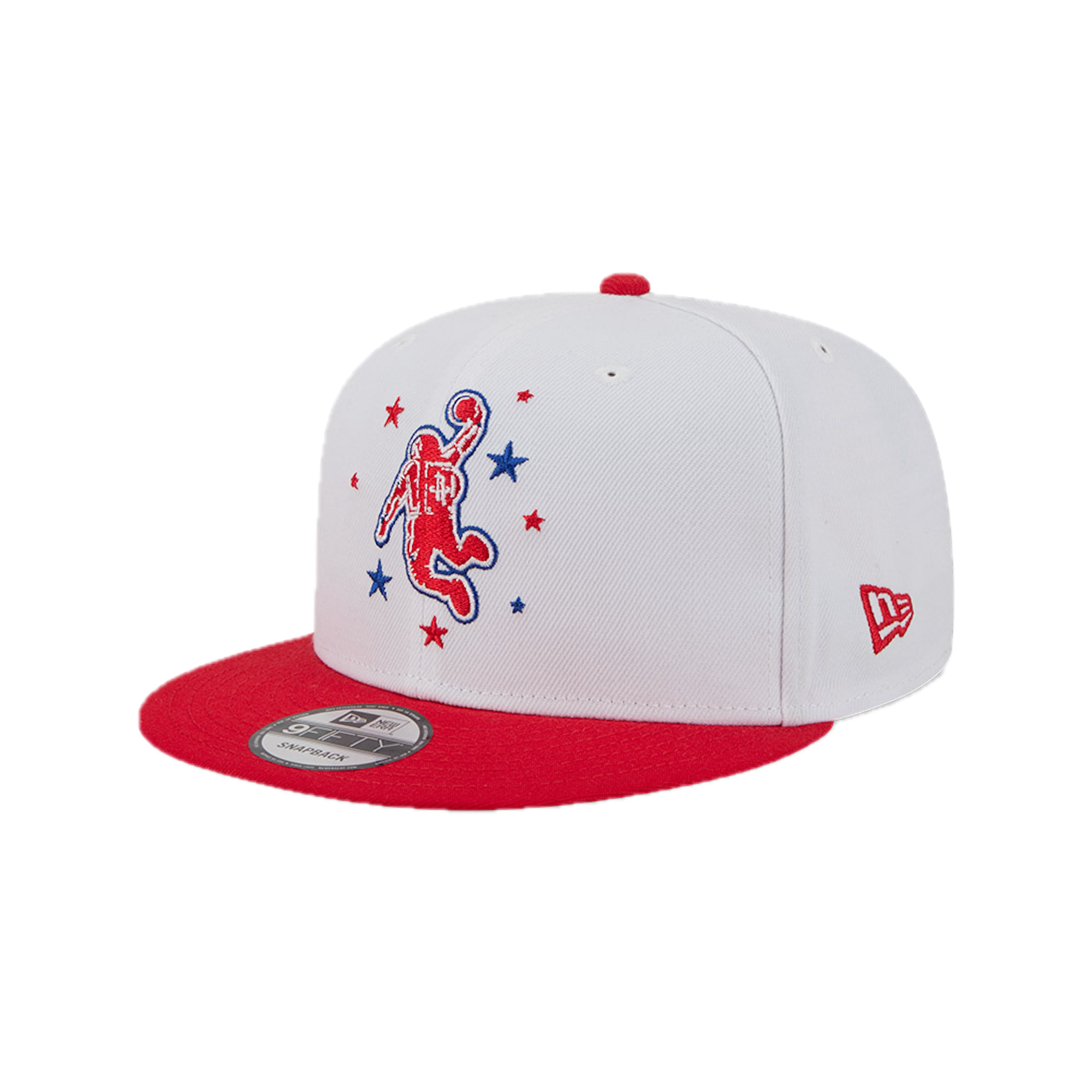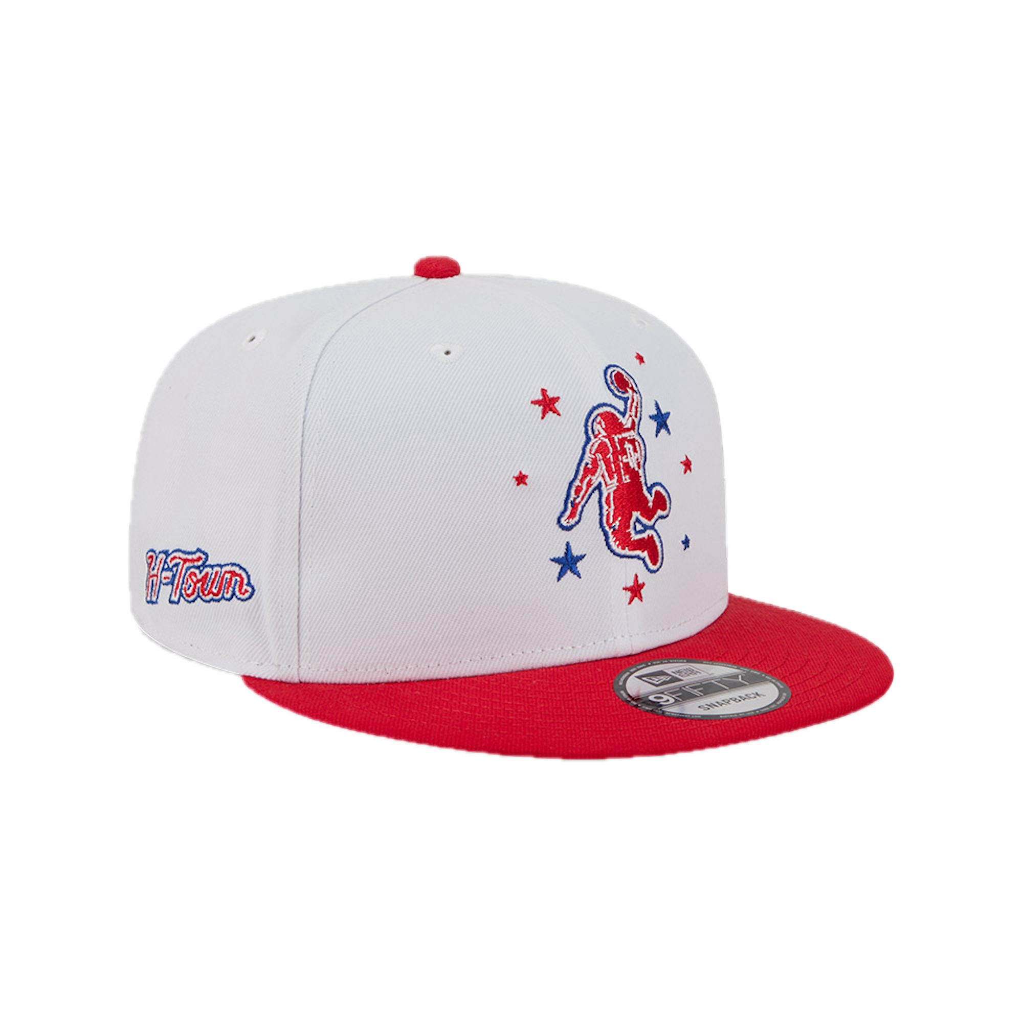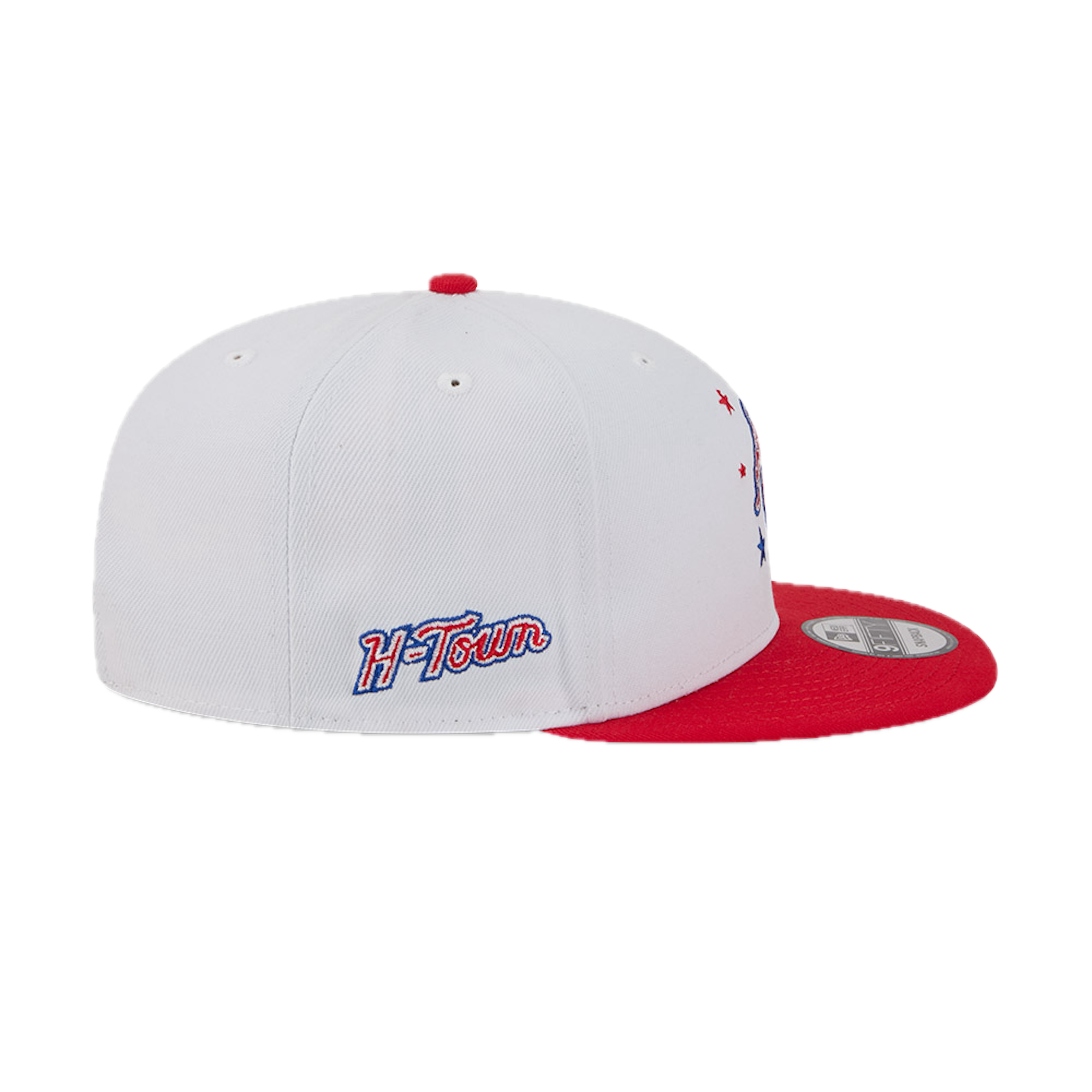 This New Era 9FIFTY Houston Rockets flat cap from the 2025 NBA City Edition features the Rockets' special edition logo embroidered on the front panels, the team logo on the right side, the NBA logo on the back, and the New Era flag embroidered on the left side.