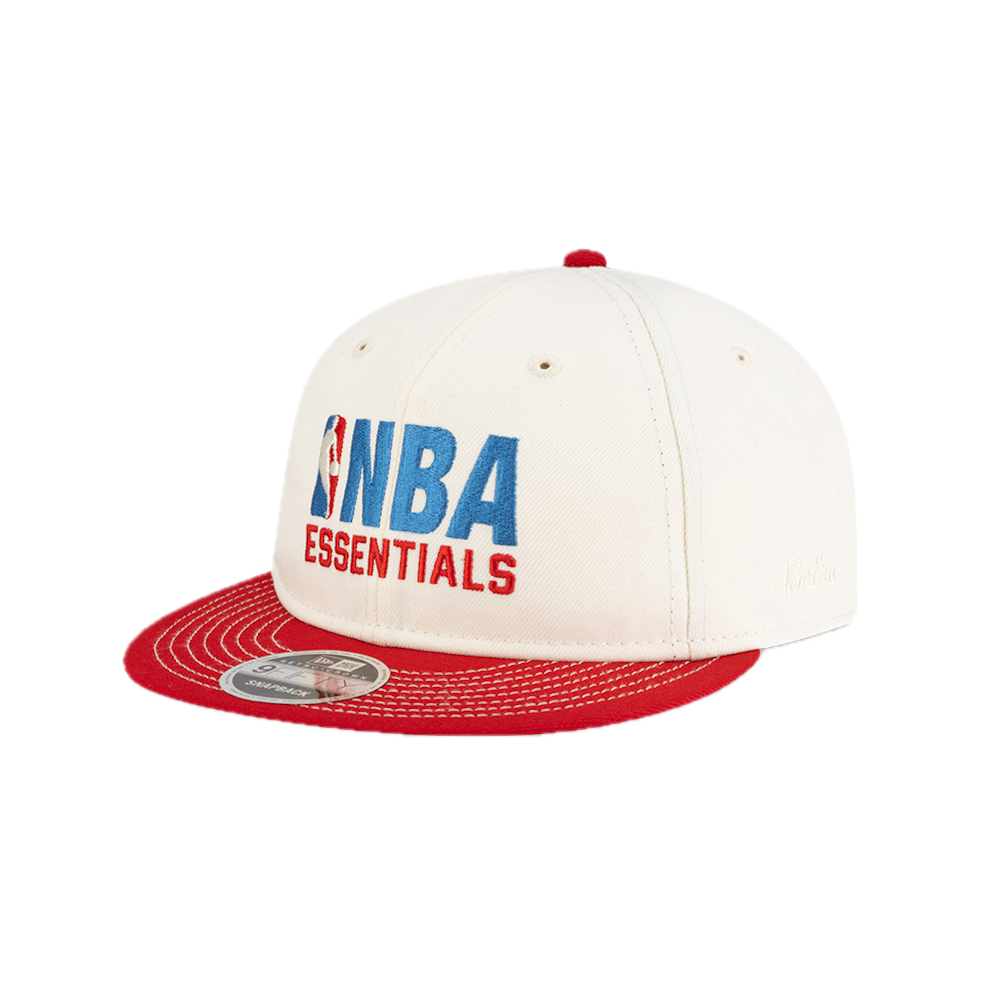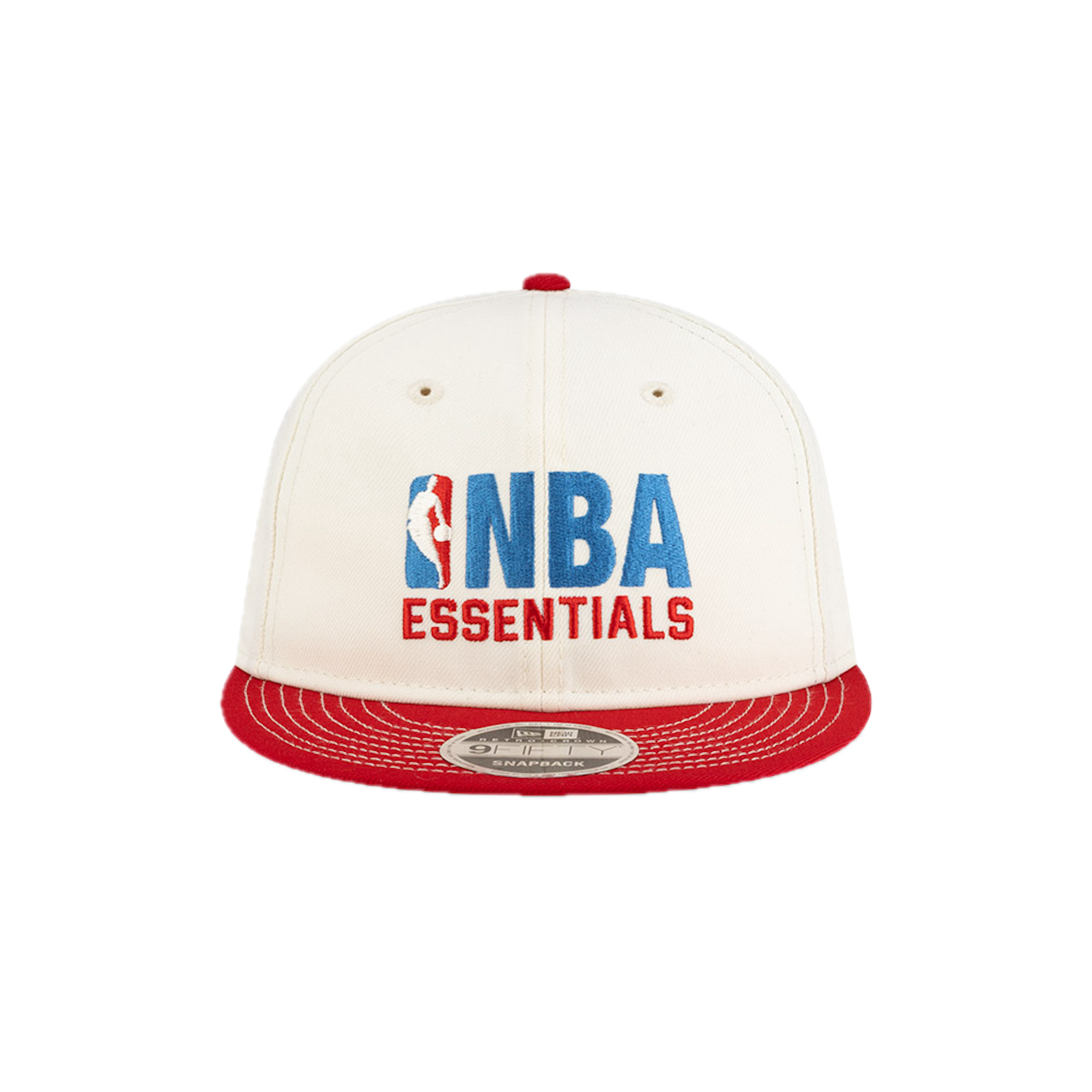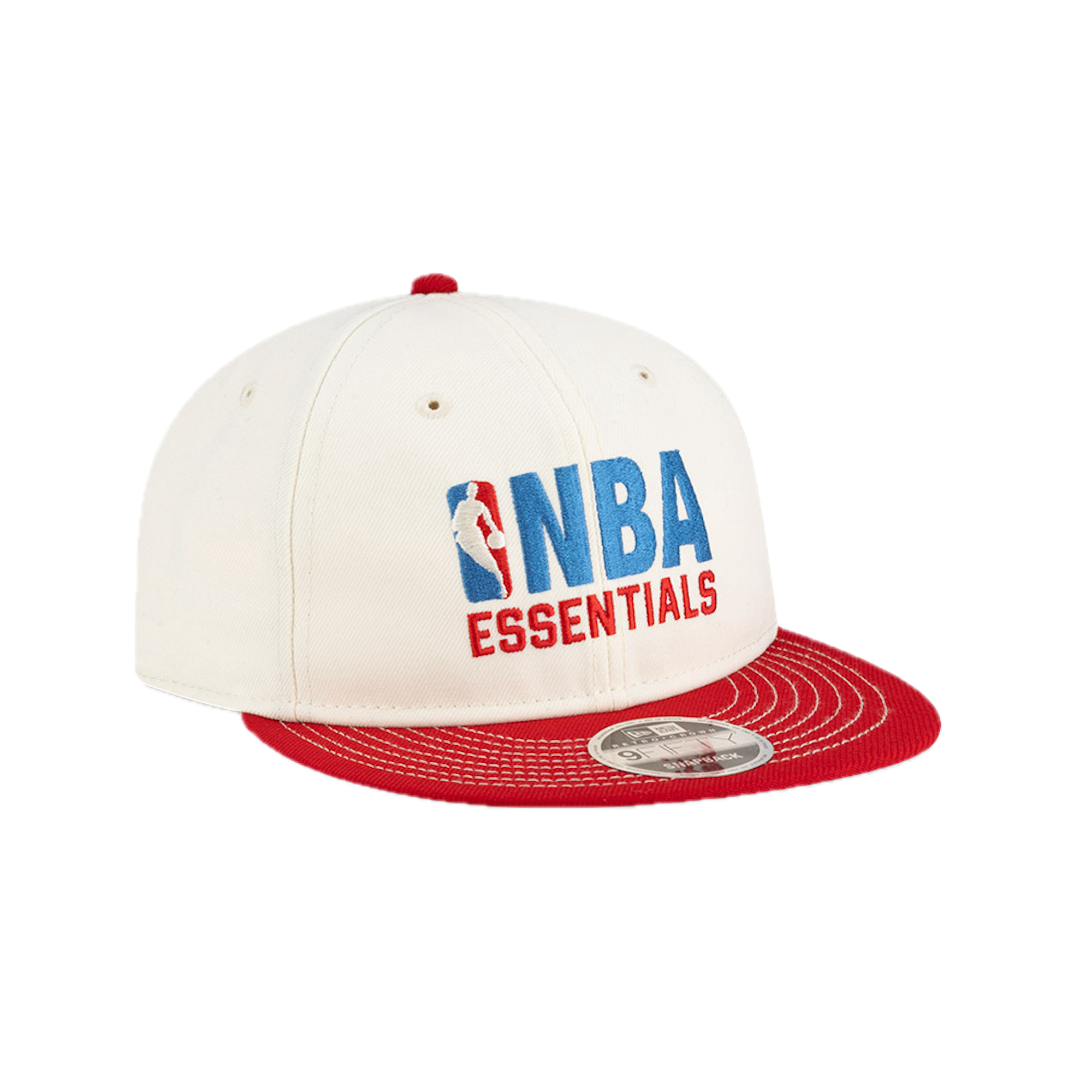This New Era 9FIFTY Retro Crown flat cap from the Fear of God Essentials x NBA collection features the collaboration name embroidered on the front panels and the New Era script embroidered on the left side.