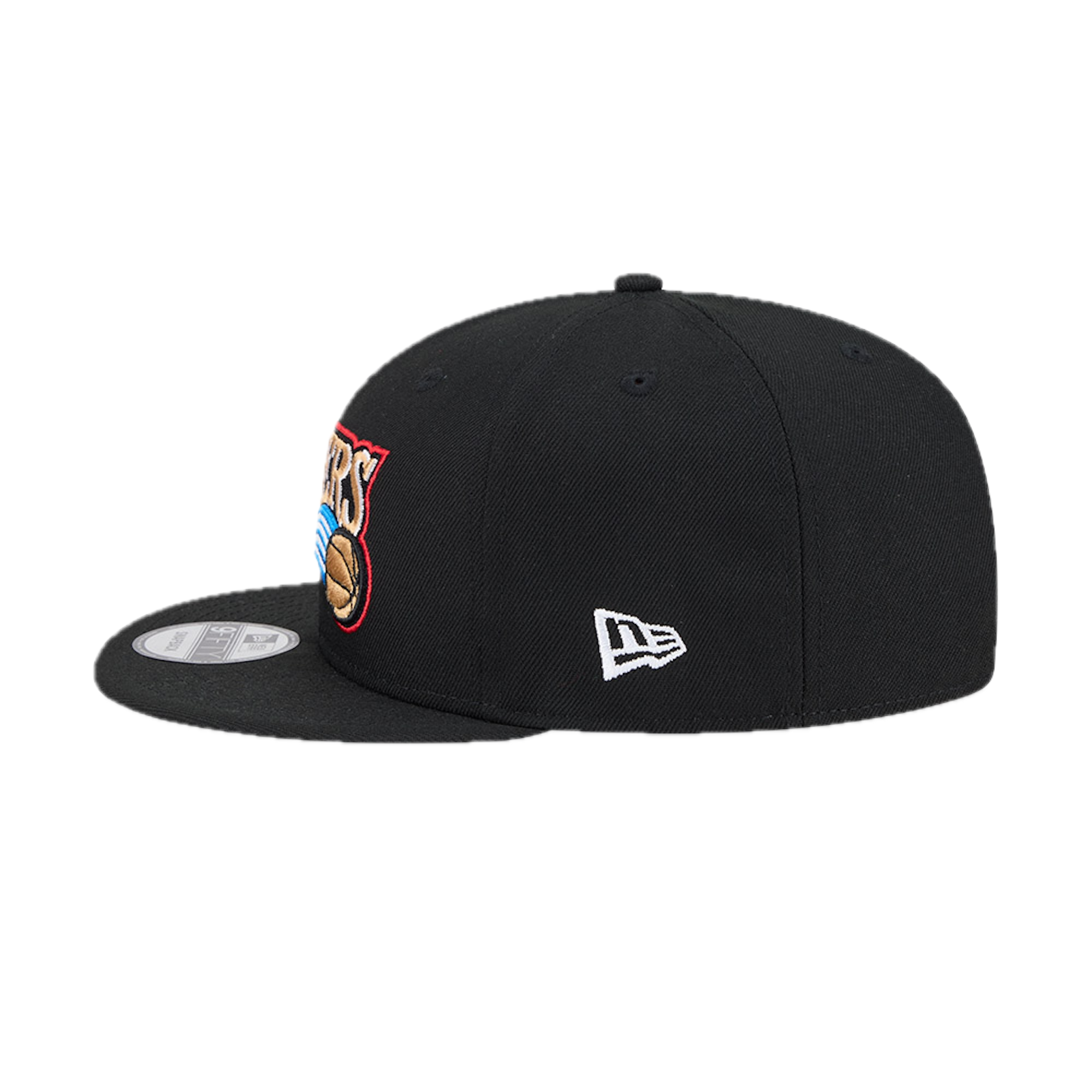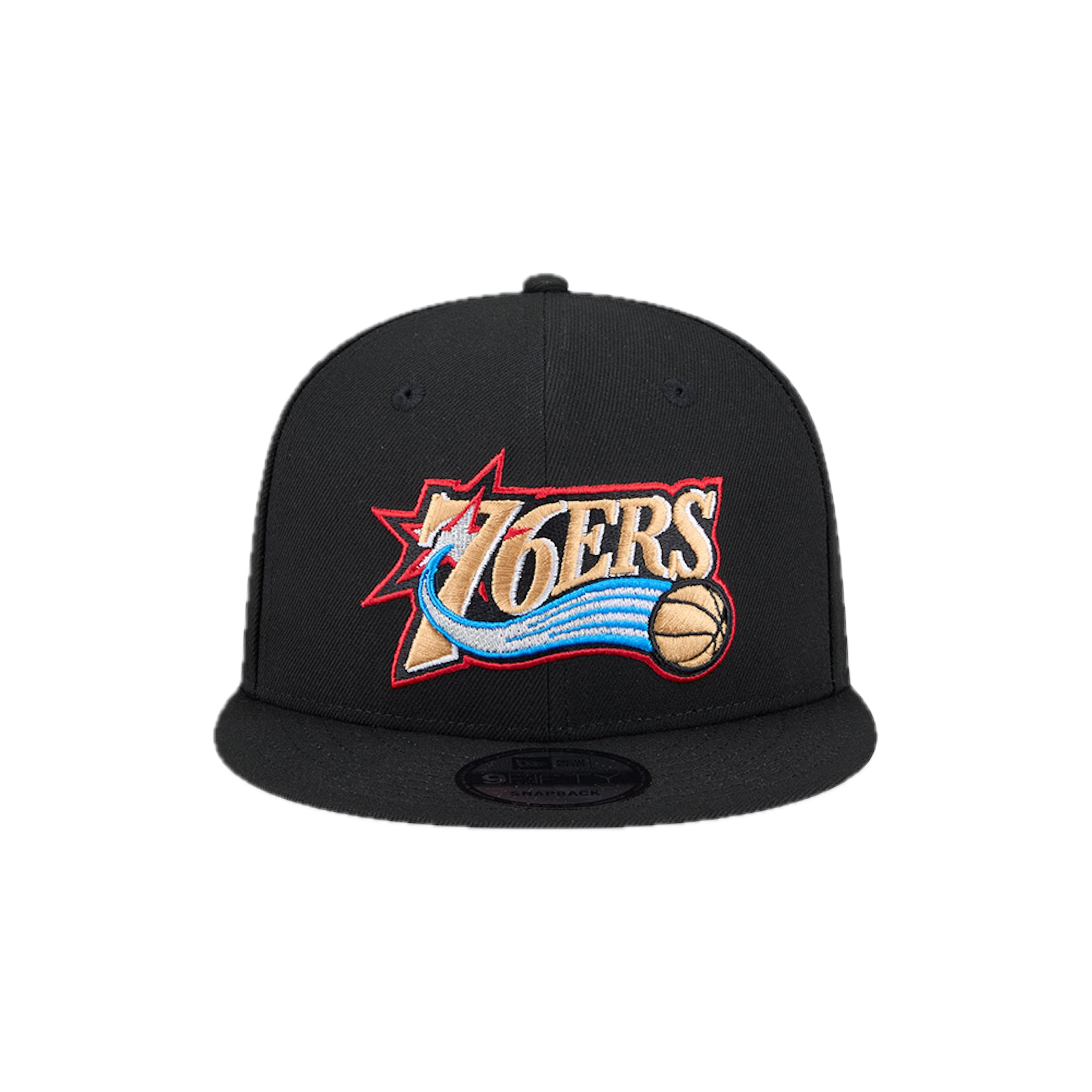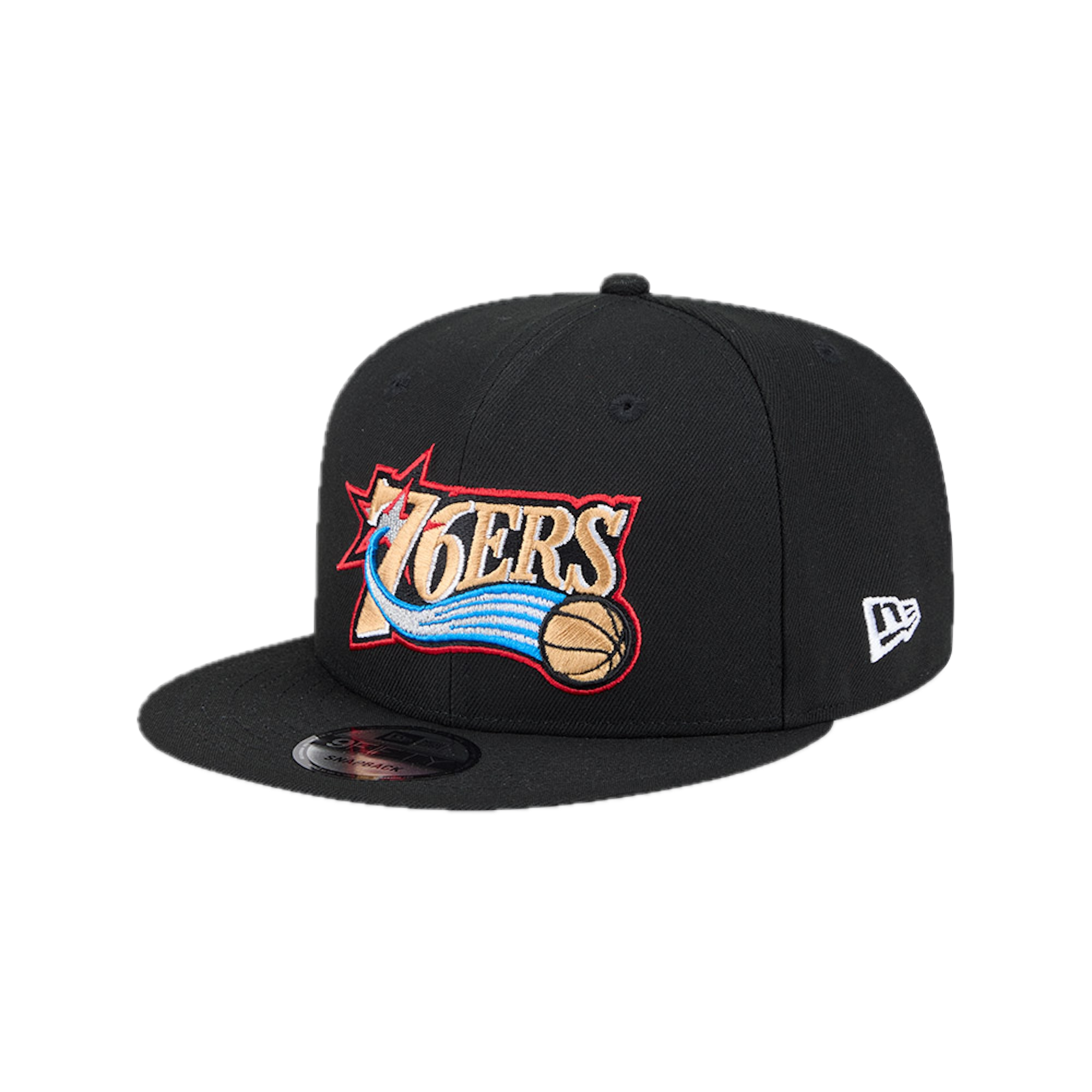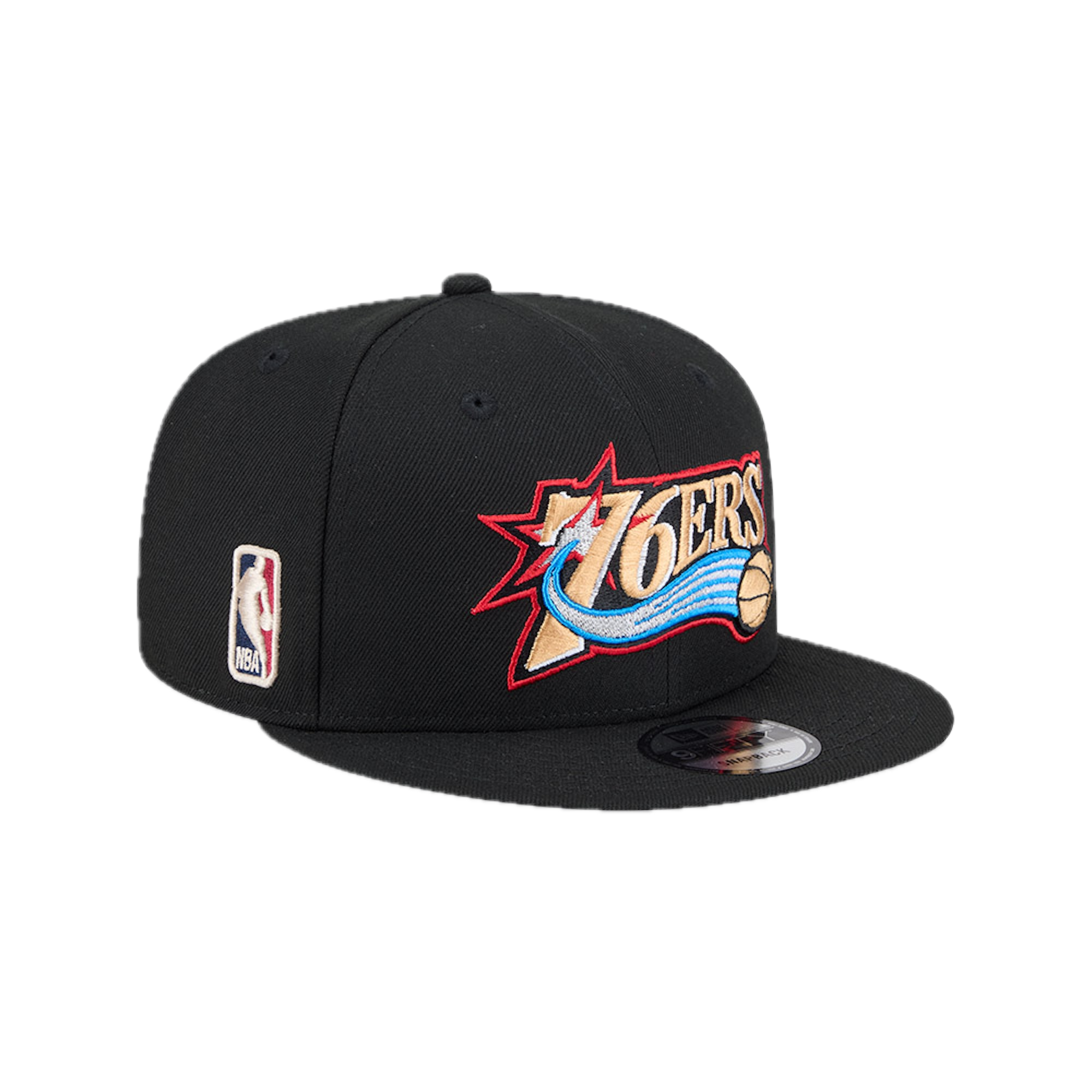 Officially licensed New Era Philadelphia 76ers NBA Hardwood Classic 9FIFTY Snapback Cap in team black. This structured 6-panel snapback hat features classic 76ers embroidery on the front (vintage Hardwood Classics style), an adjustable snapback closure for a custom fit, and the NBA logo at the rear or side. Itβs made for everyday wear and shows support for the Philadelphia 76ers on and off the court.