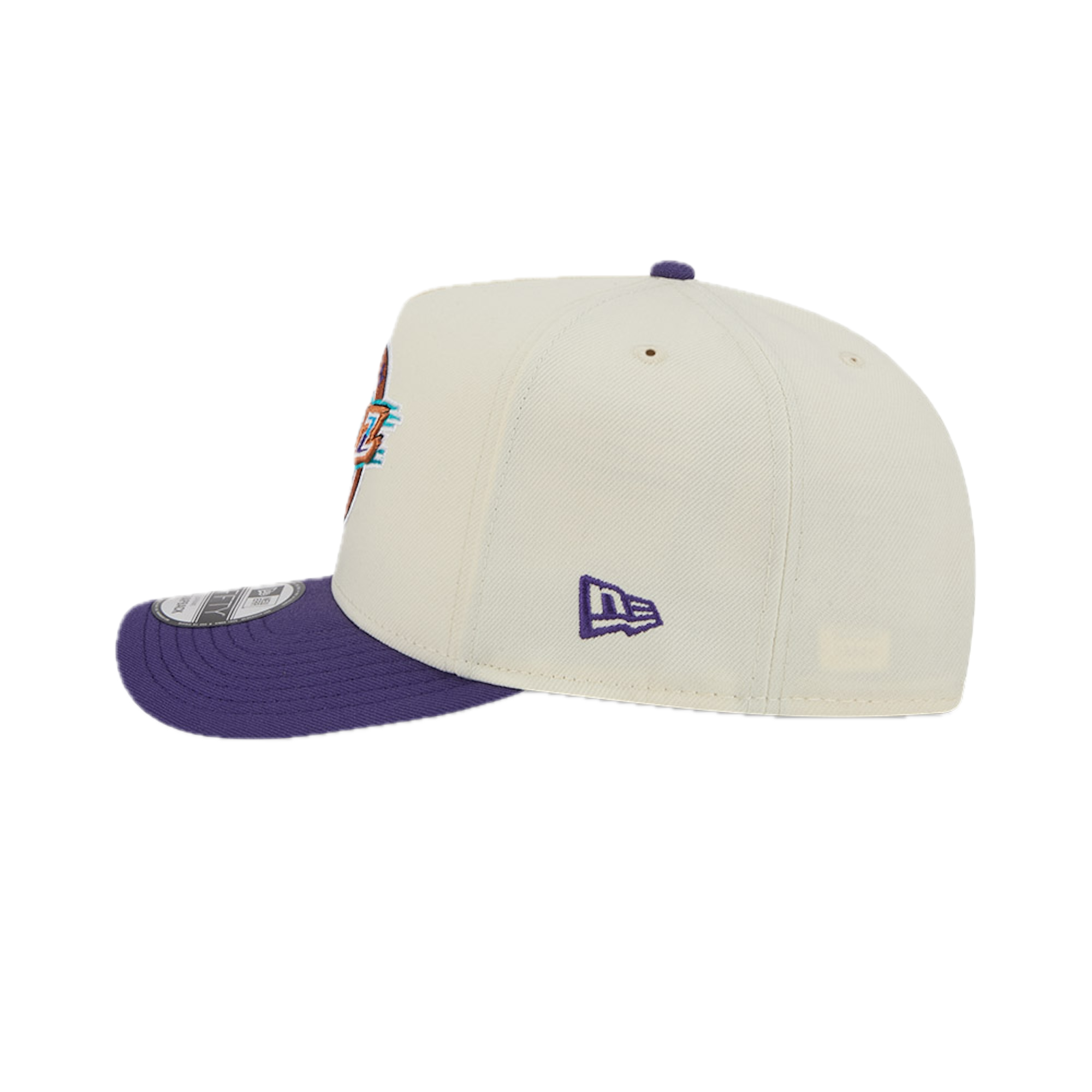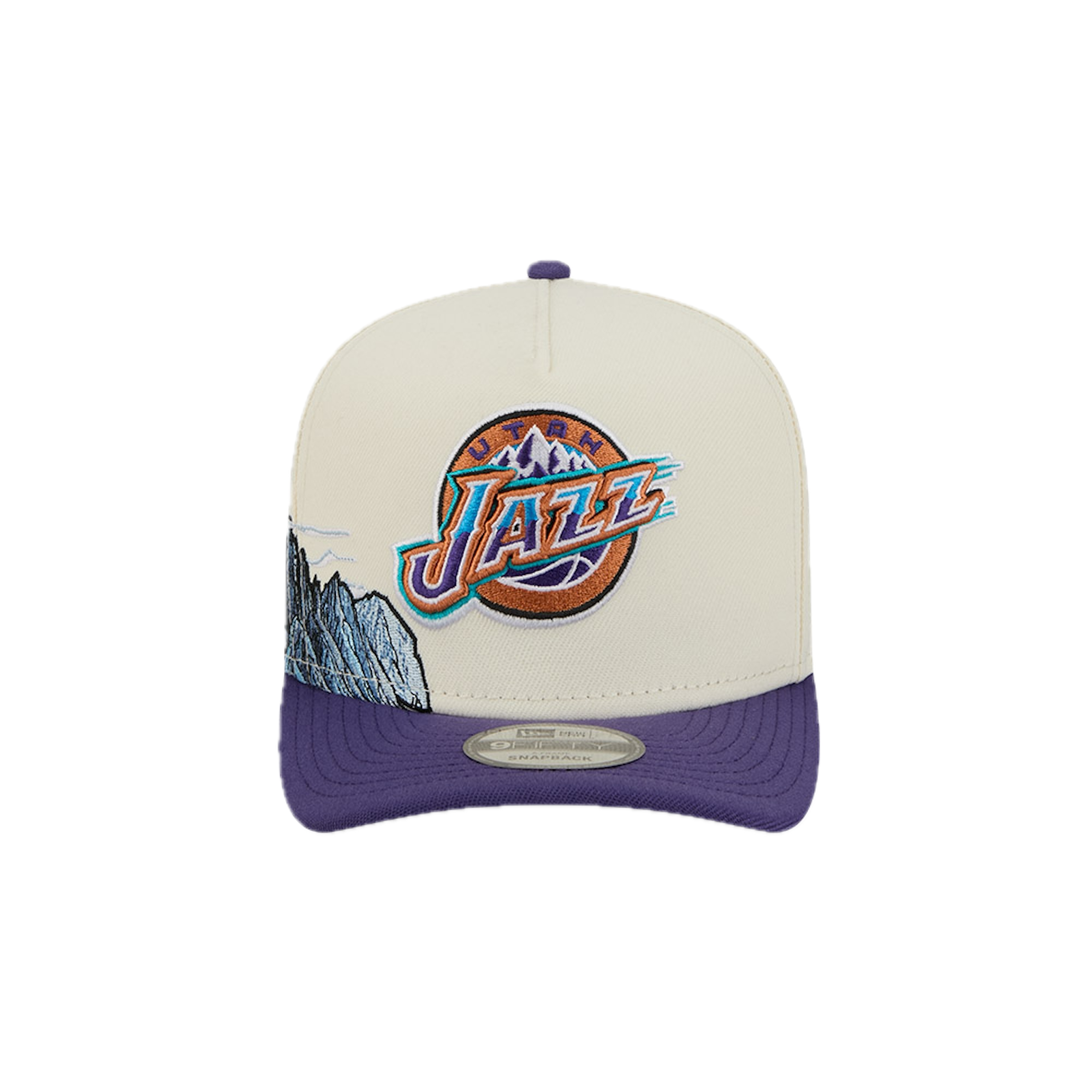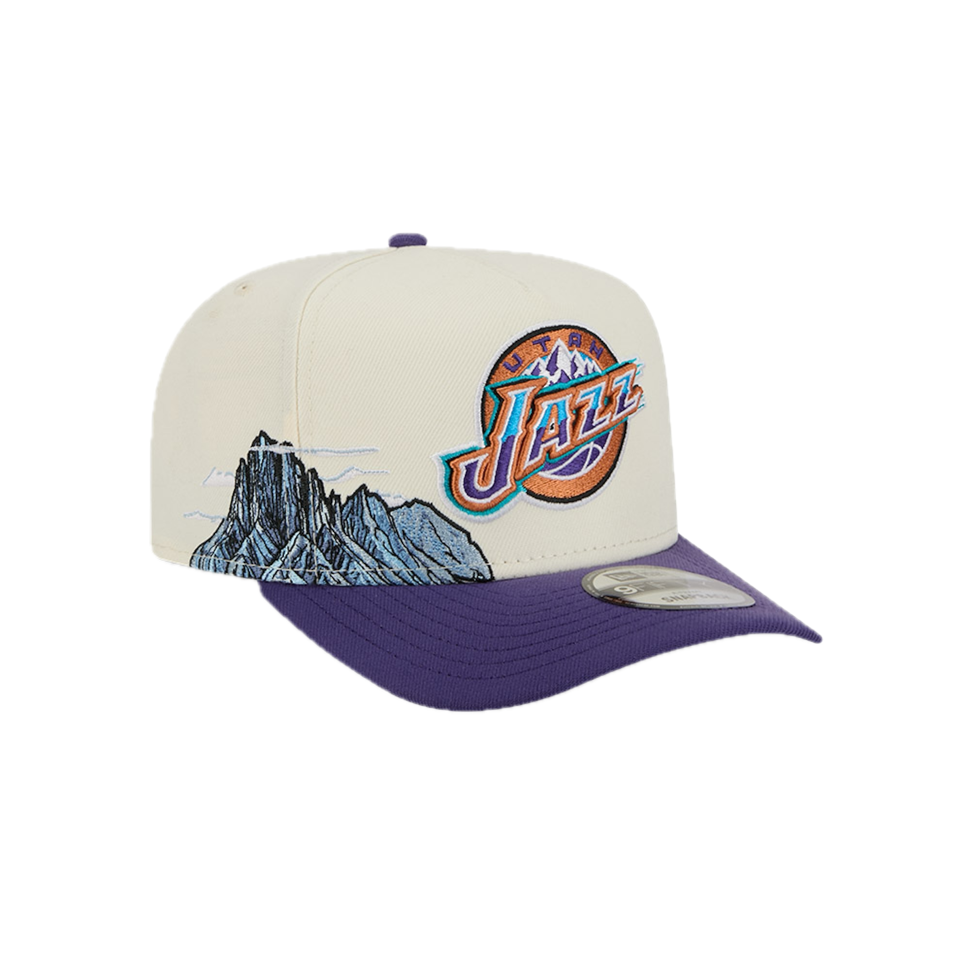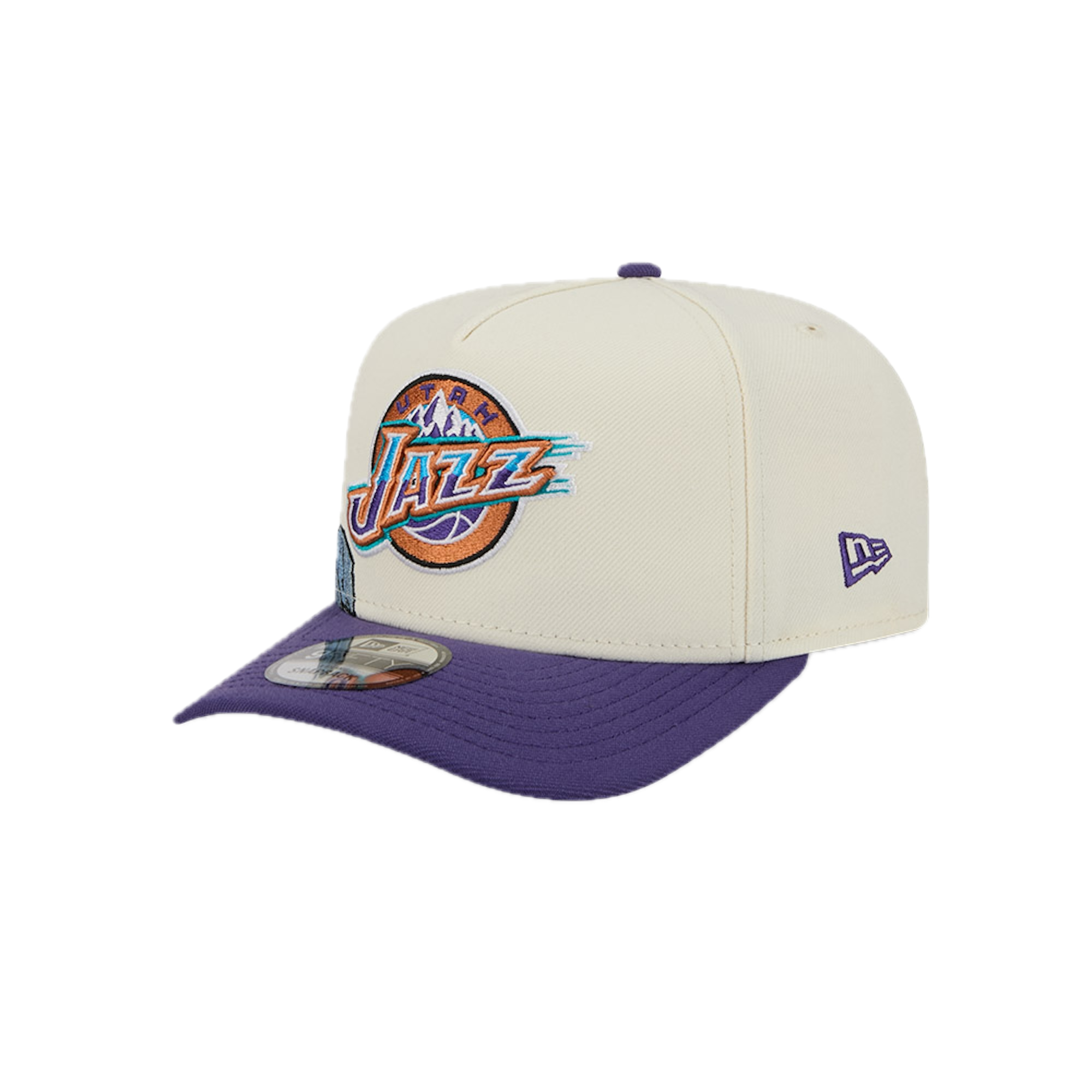 Rock a classic look that completes any fit with the New Era Utah Jazz NBA Hardwood Classics 9FIFTY A-Frame Snapback Hat. It has a structured design, embroidered details and a curved visor for a classic look.