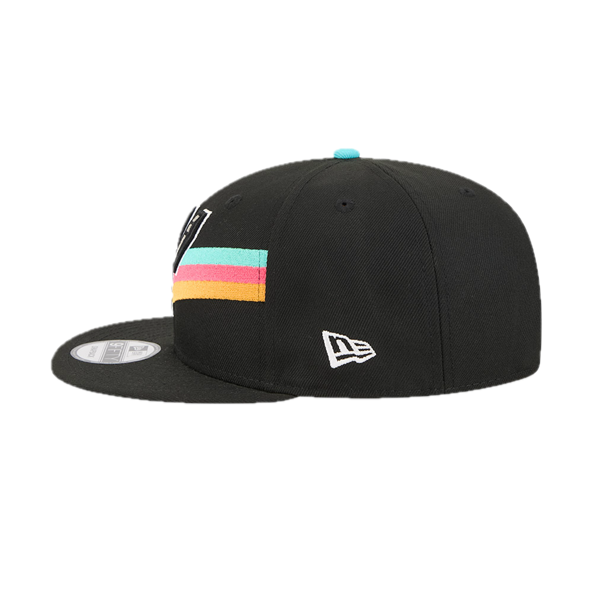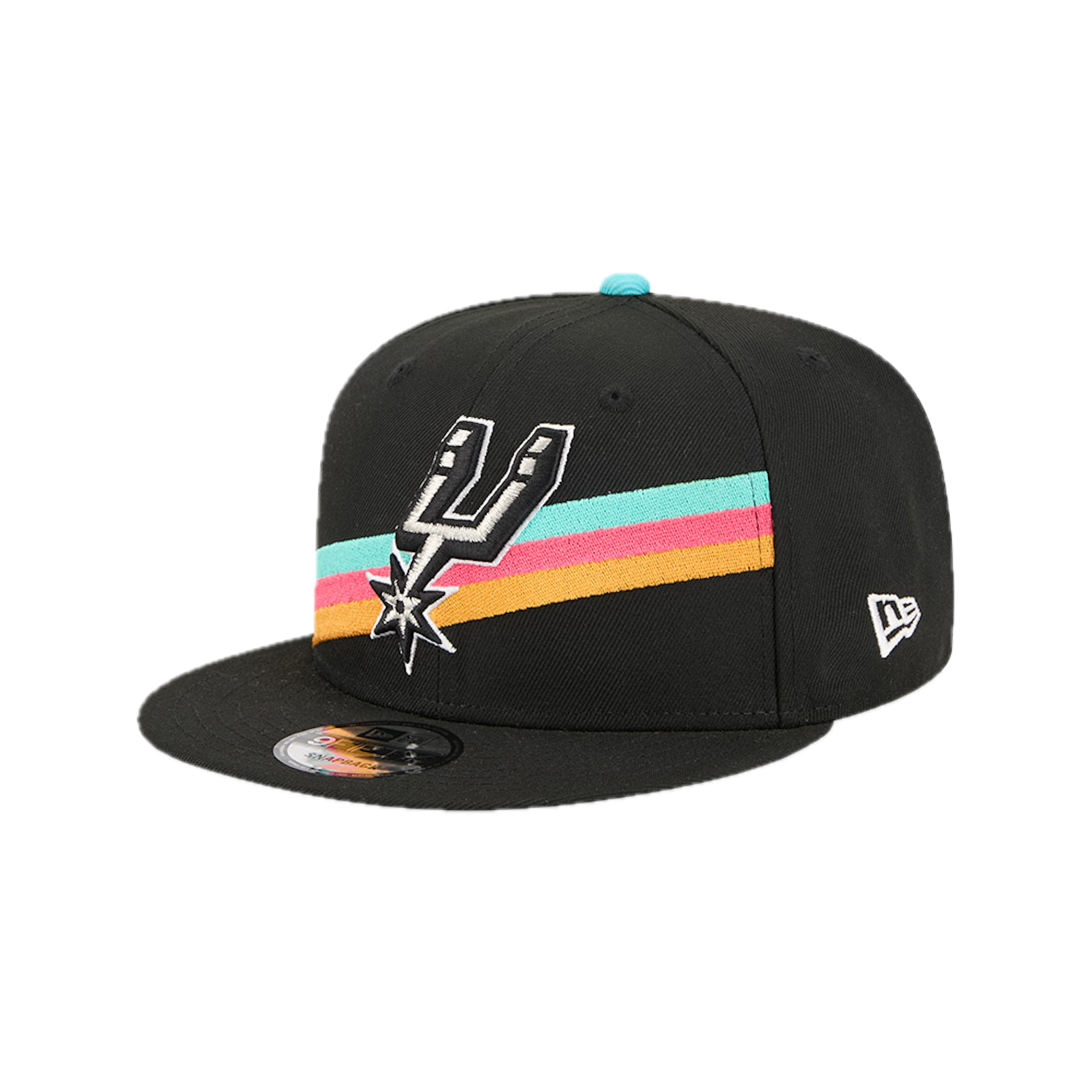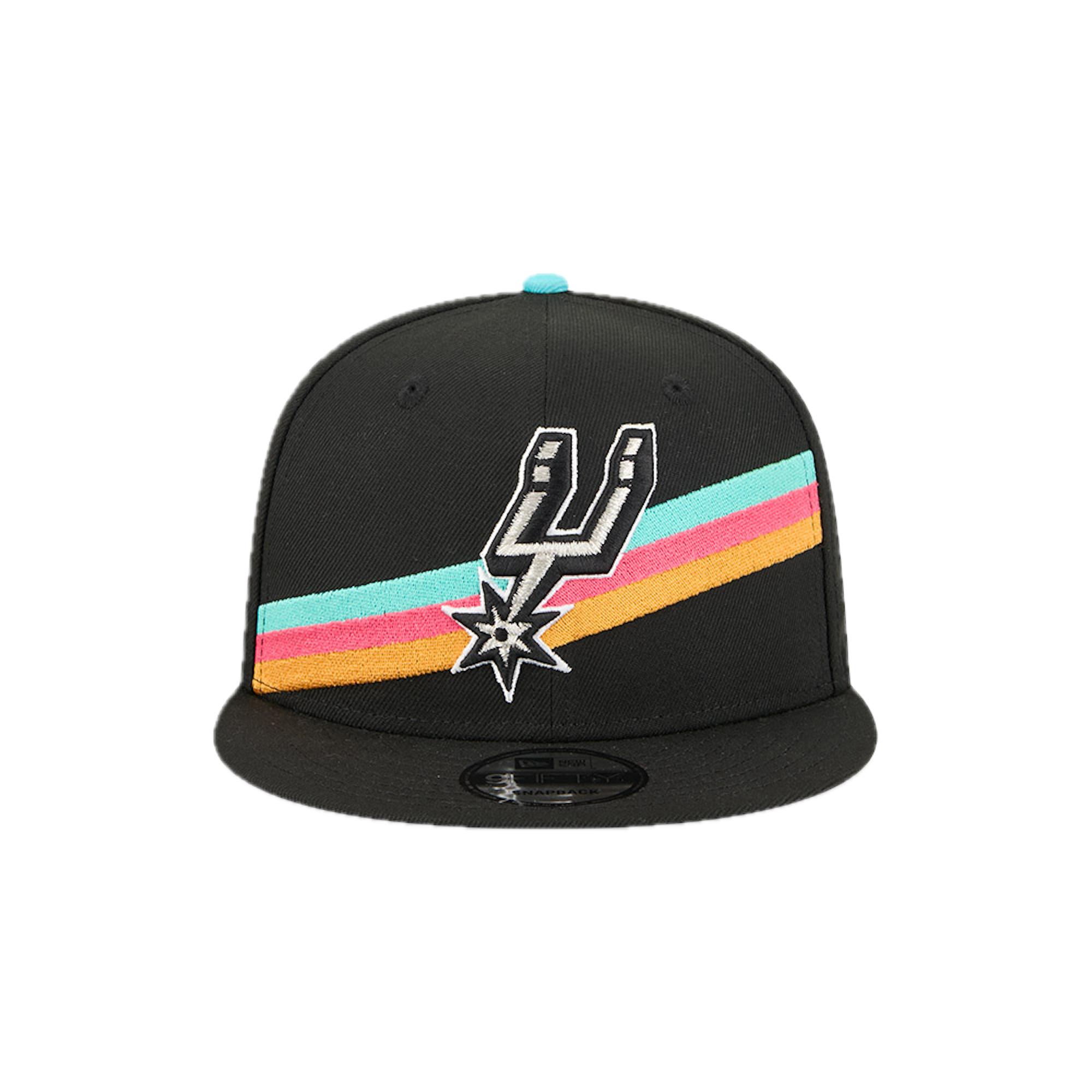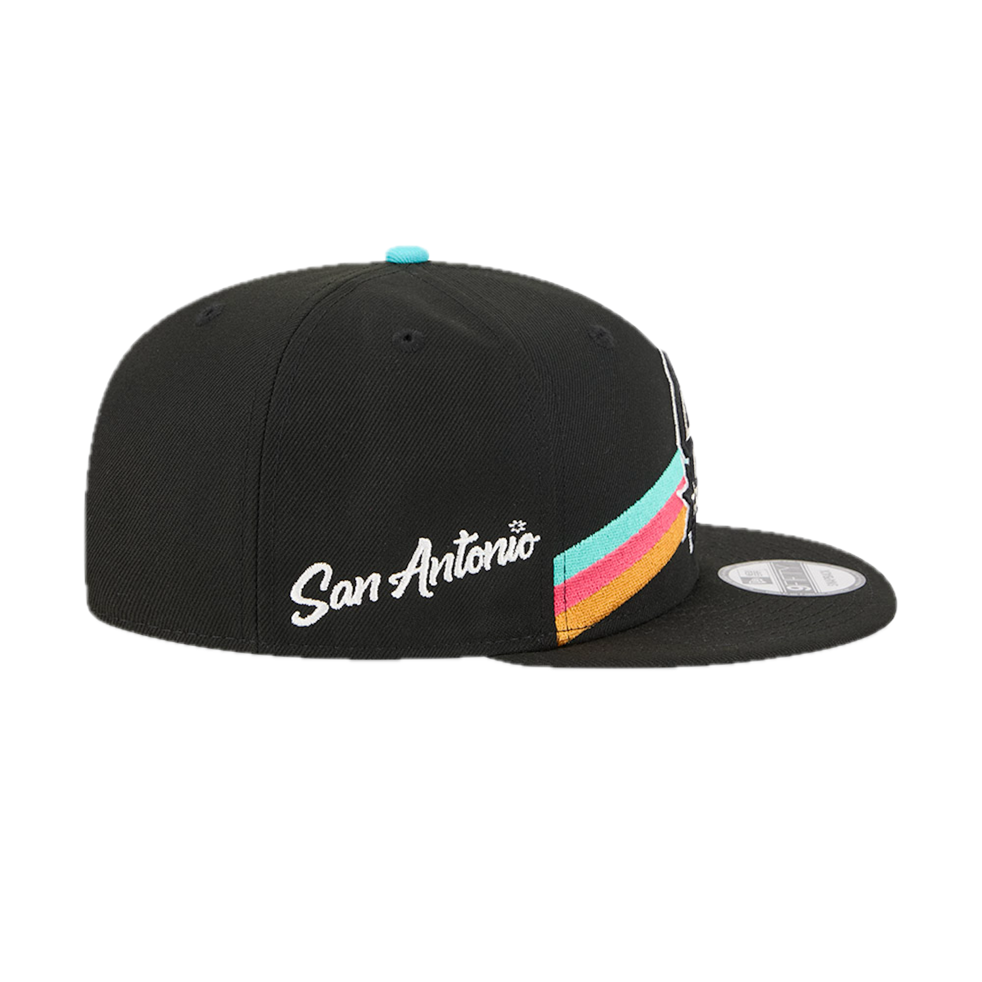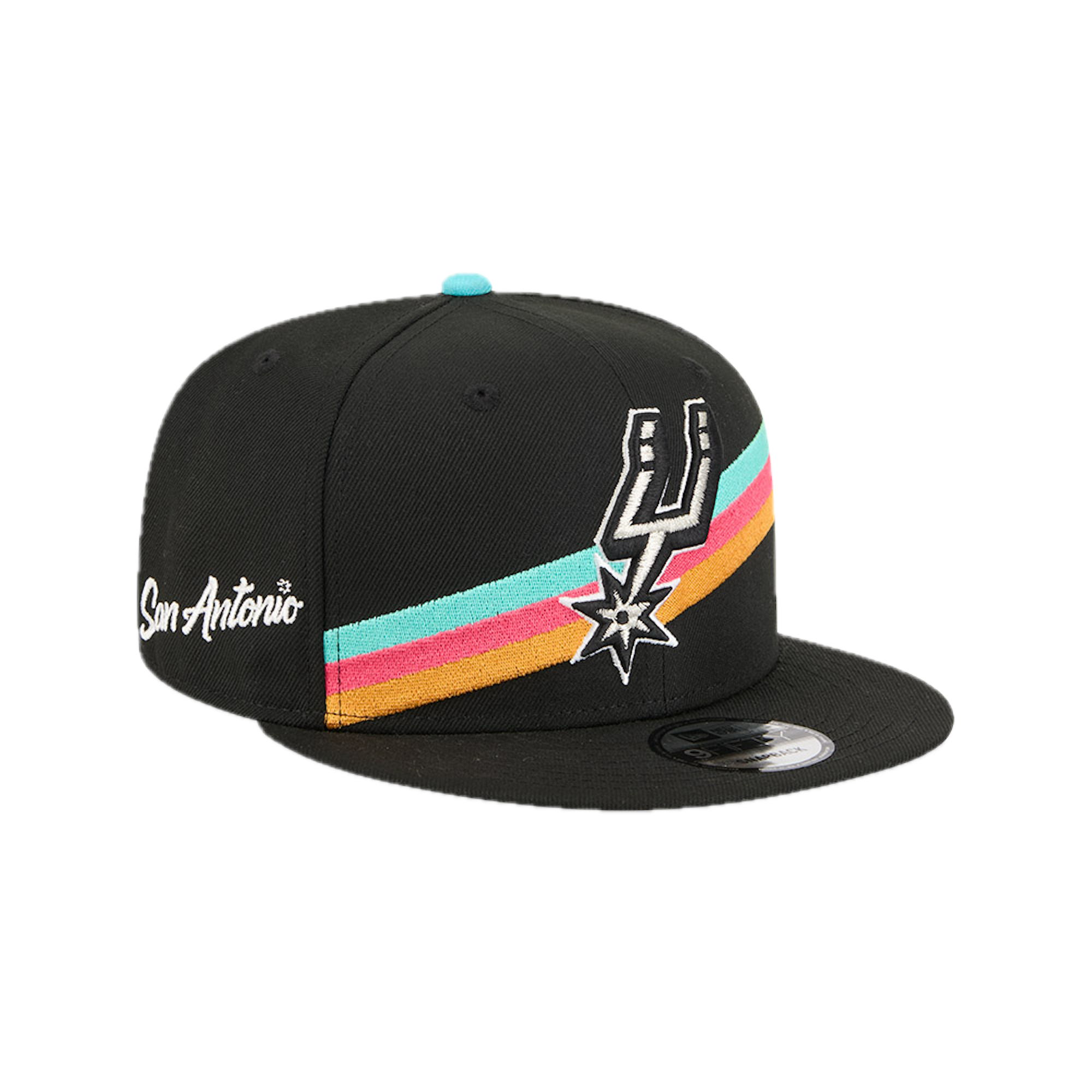 The San Antonio Spurs 2025 City Edition 9FIFTY Snapback features an embroidered Spurs City Edition logo at the front panels with a logo at the right-wear side. Additional details include the NBA Logoman above an adjustable snapback closure at the rear and a gray undervisor.